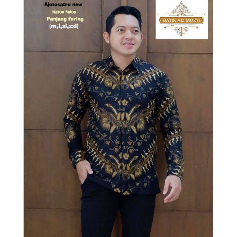Best Seller Pakaian di Kabupaten Banyuasin Kemeja Batik Pria Cowok Solo Full Furing Lengan Panjang Katun Halus - Batik Solo dari Batik Ali Mukti Kab. Sragen