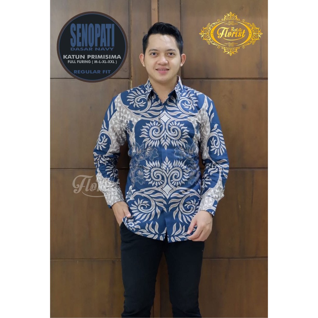 Name: Batik Pria Senopati Biru Size M - Xxl Regular Batik Solo Halus Asli Katun Primisima Full Furing