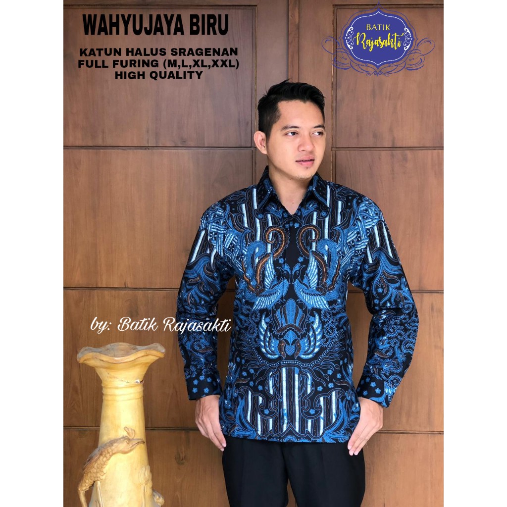 Name: Atasan Kemeja Batik Pria Lengan Panjang Premium Wahyujaya Biru Full Furing Rajasakti Solo Ori